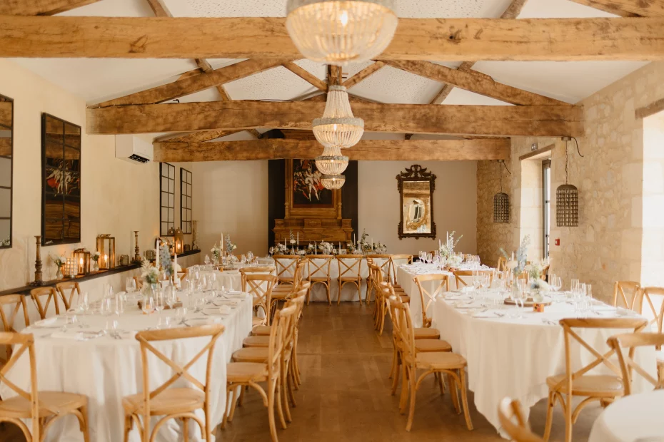 Catering and suppliers are flexible, giving couples the freedom to create the kind of celebration they imagine, whether that leans towards an elegant dinner showcasing regional produce or something more relaxed and informal. If the weather turns, the château’s interiors offer a seamless continuation without losing the atmosphere of the day.