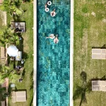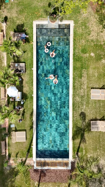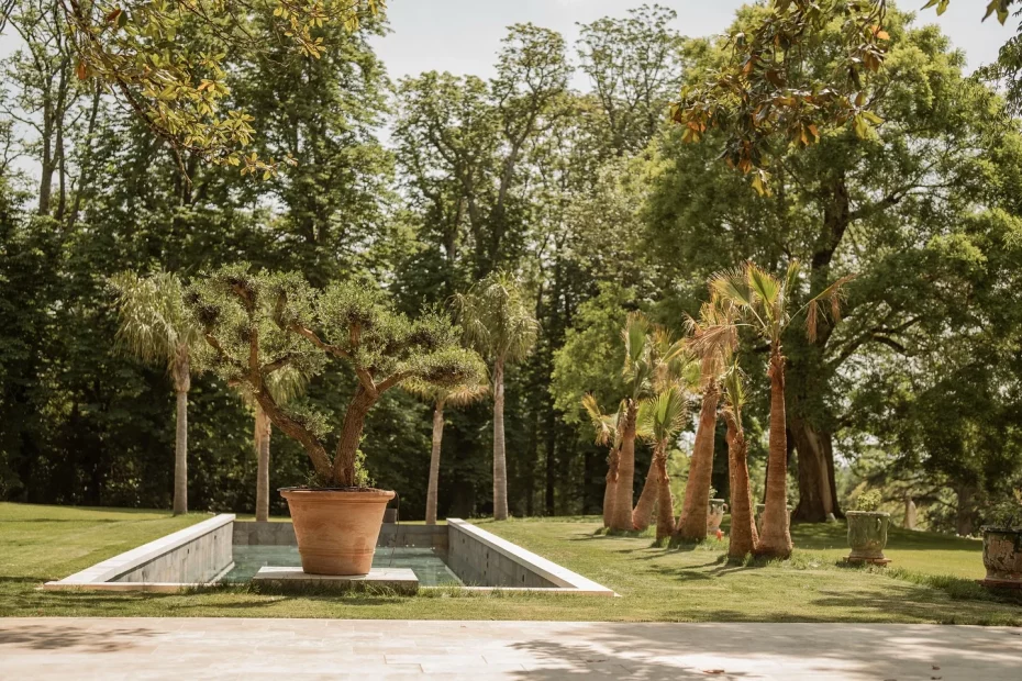 Discover different spaces with unique atmospheres: French-style gardens, a Mediterranean garden, and an infinity pool beneath exotic palm trees…