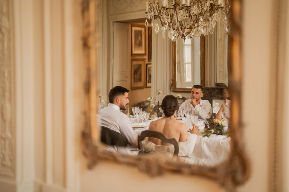The château itself carries a classic French elegance, balanced by a warmth that makes it feel genuinely liveable rather than ornamental. With capacity for celebrations from 30 to 140 guests, it moves effortlessly between intimate gatherings and larger, high-summer affairs. A ceremony can unfold in the gardens beneath open skies, with the landscape acting as a natural backdrop, before guests transition seamlessly into a reception that flows across terrace and interior spaces as the day evolves.