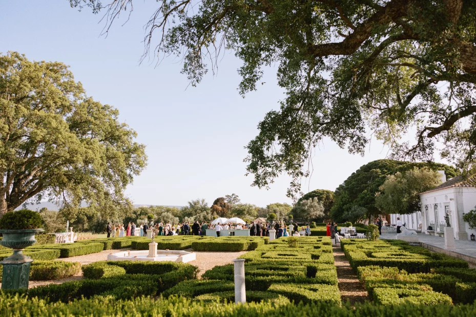 How Herdade do Perú feels both grounding and grand all at once. Surrounded by nature, it’s a place designed for slowing down and taking it all in — every archway, every garden, every quiet corner thought through with care. The symmetrical gardens, inspired by the landscapes of Versailles, bring a sense of cinematic balance to the estate — a setting that was made for unforgettable celebrations.