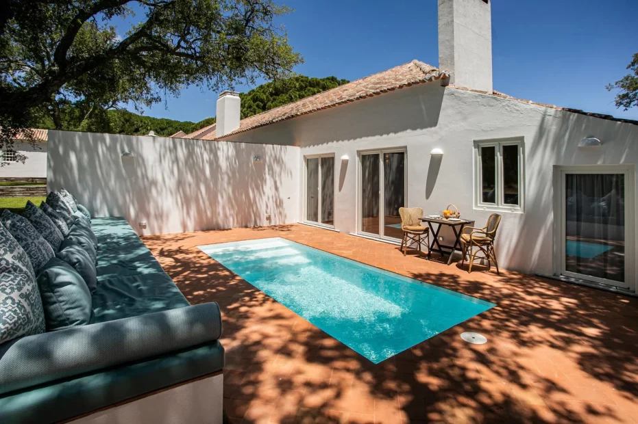Set across 350 hectares of rolling Portuguese countryside, Herdade do Perú is where old-world grandeur gets a modern glow-up — stately, sun-soaked, and effortlessly romantic. Just 30 minutes south of Lisbon, this sprawling estate feels a world away — a place of vineyards, wild meadows, and timeless sophistication.