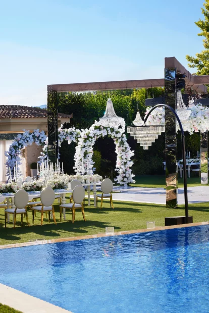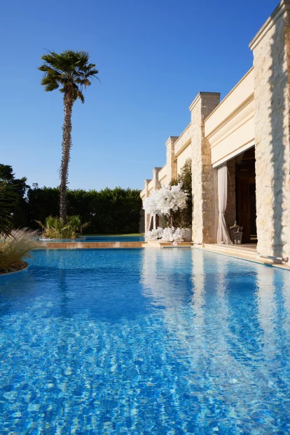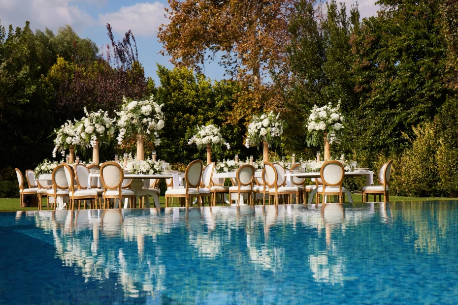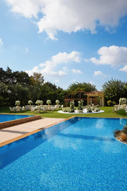Minimal and elegant by design, the estate was built to be a blank canvas for creativity – a space where you can bring your vision to life exactly as you imagine it. Whether it’s an alfresco dinner under the stars or a grand indoor reception, every corner adapts effortlessly to your plans. With a capacity of up to 870 guests, it’s ideal for weddings that are big on style without ever feeling overdone.