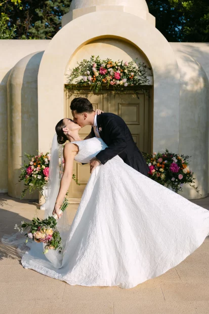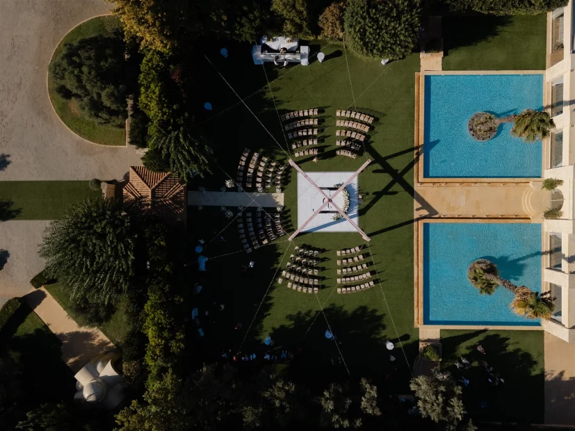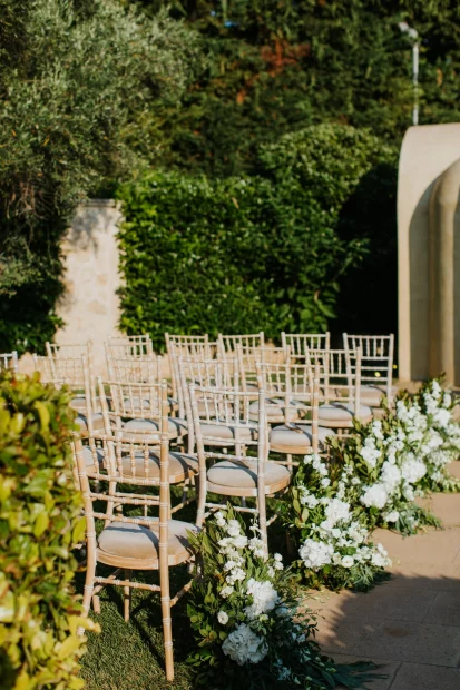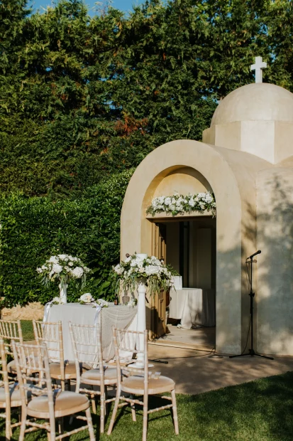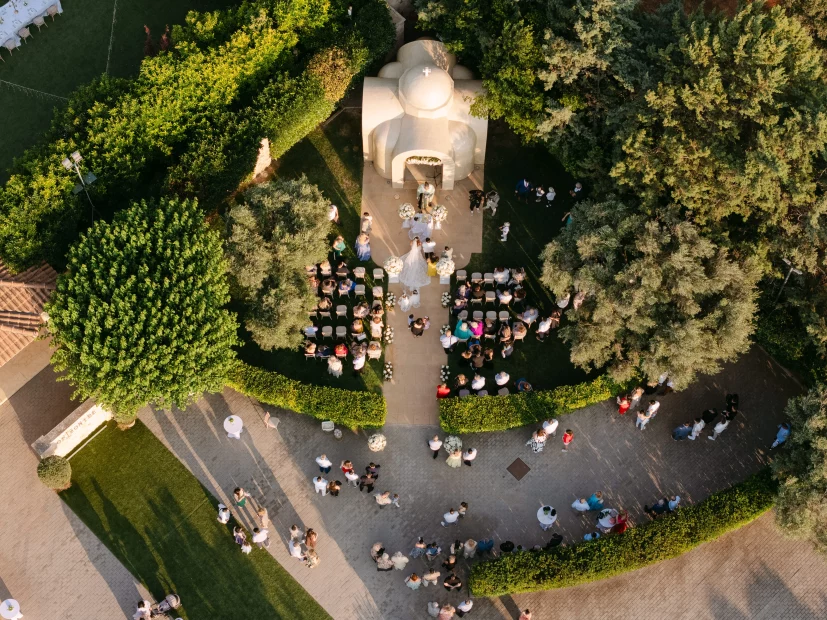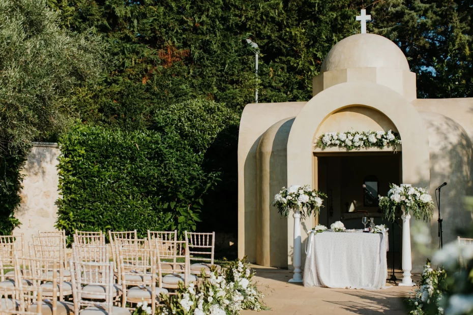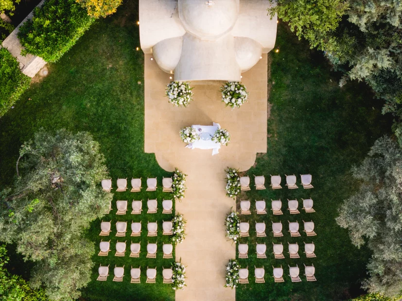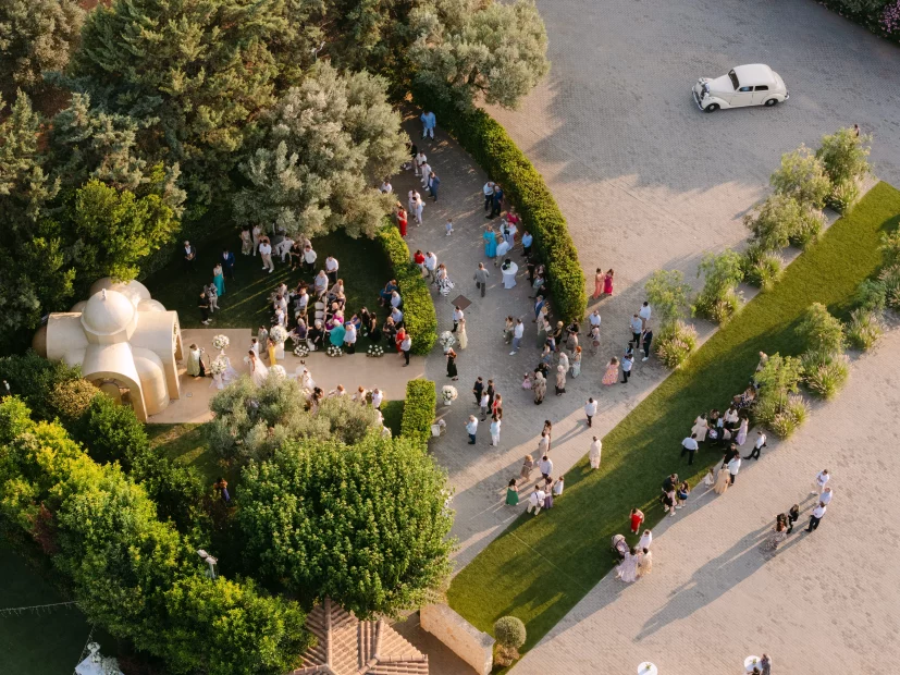 For couples dreaming of a church ceremony, the private chapel dedicated to Saint Marina sits quietly among the olive trees – intimate, romantic, and just a short stroll from the party. There’s even a deluxe suite for getting ready in style, so your whole day unfolds in one beautiful place.