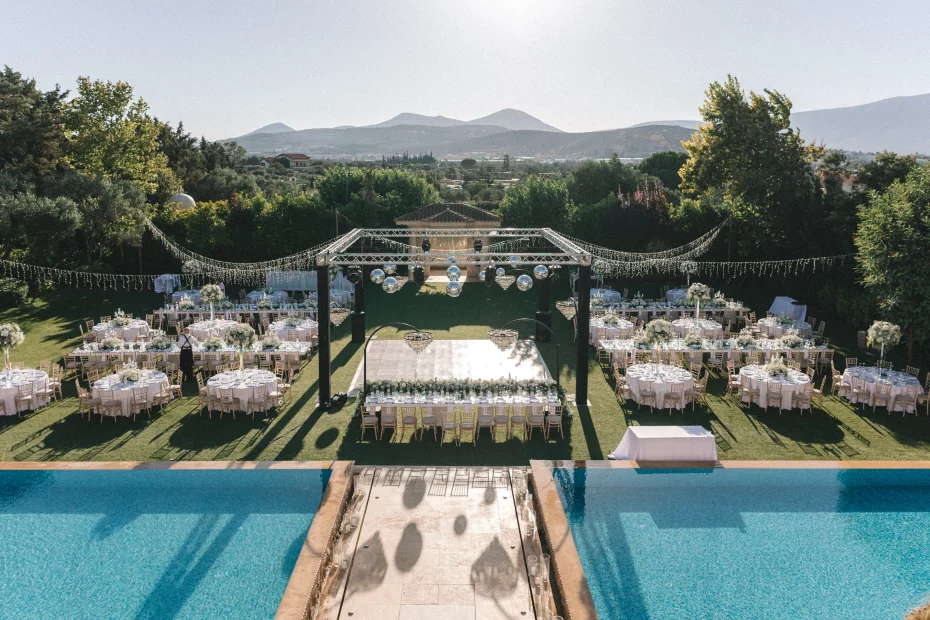 Tucked away from the city buzz yet close enough for convenience, Ktima Orizontes is a contemporary wedding venue that feels like a breath of fresh air. Set across nine acres of lush gardens, reflective pools, and clean-lined architecture, it’s a serene haven where every celebration finds its perfect rhythm.