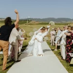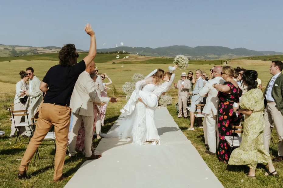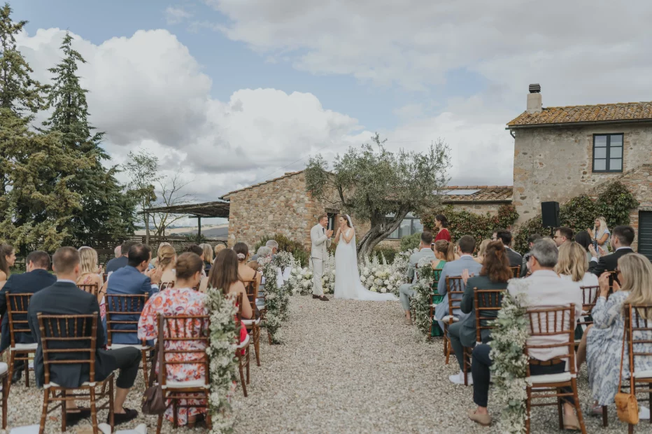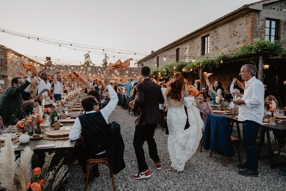 While Italyโs train network is excellent between cities such as Rome, Florence and Pisa, reaching countryside estates often requires a short taxi or private transfer for the final part of the journey. For this reason, many couples arrange guest shuttles or private coaches on the wedding day to ensure everyone arrives comfortably and safely.