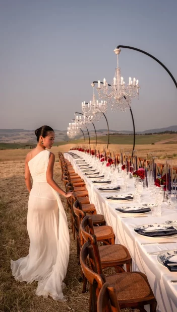 A welcome dinner the evening before the wedding, when the first Tuscan sunset sets the tone for the celebrations to come.