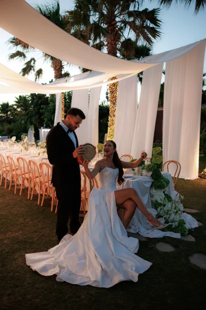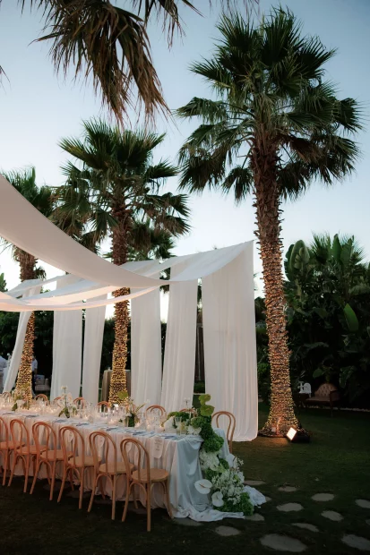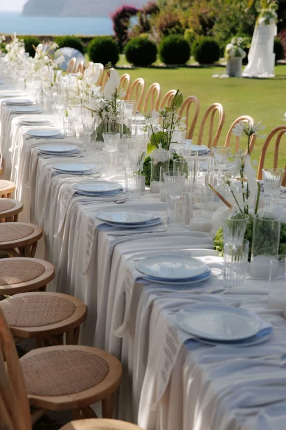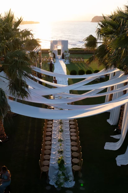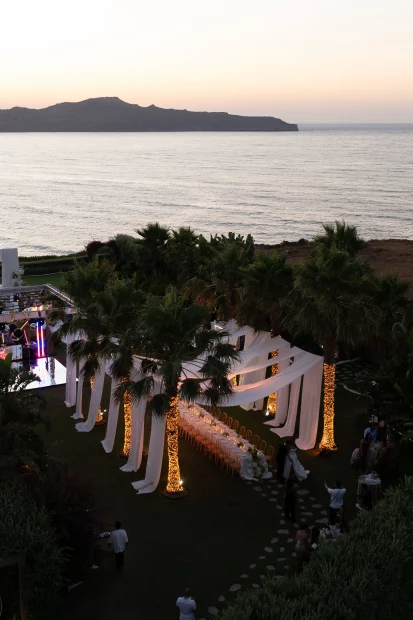 Surrounded by lush greenery and natural beauty, the space is effortlessly elegant yet fully customisableโwhether you’re dreaming of a laid back chic celebration or a more formal affair. It’s elevated position gives you that tucked-away feeling, but youโre still close to Chaniaโs old town charm and Creteโs sparkling coastline, so thereโs plenty for guests to explore.