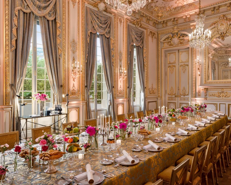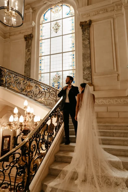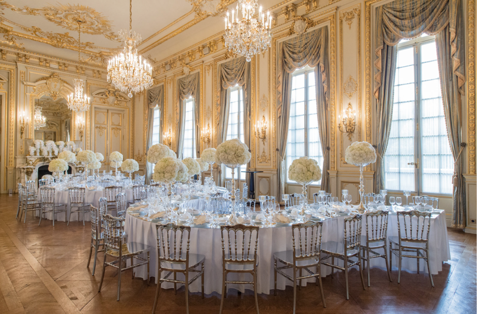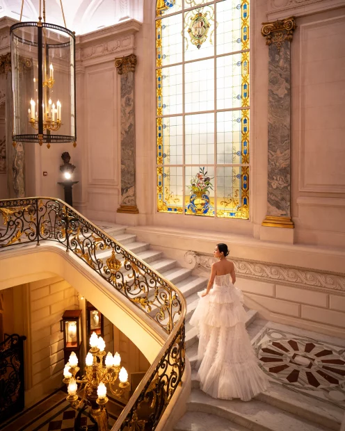 That the reception rooms are officially listed as Monuments Historiques — a rare honour that preserves their original 19th-century grandeur. It’s not every day you celebrate your wedding in a setting once reserved for princes and Parisian high society.