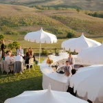 Catering and supplier arrangements remain flexible, giving couples the freedom to curate a team aligned with their vision. Whether that leans towards refined minimalism or abundant Tuscan hospitality, the venue offers a striking architectural canvas rather than a prescribed formula. Should weather conditions require, alternative arrangements can be thoughtfully planned within the estate’s structure, ensuring continuity without compromise.