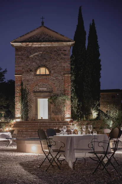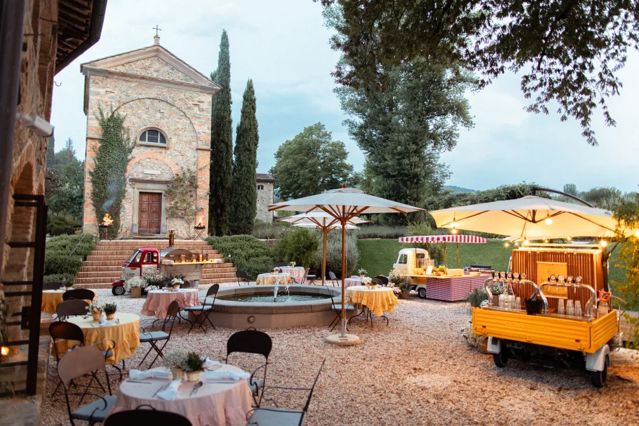 There’s something quietly magical about Vocabolo Moscatelli – a place that feels less like a venue and more like home. The private chapel sets the tone, transforming from ceremony space to candlelit dining room to late-night dance floor without missing a beat. The atmosphere is laid-back but design-driven, surrounded by nothing but nature and that golden Umbrian light. For a little indulgence, the Private Spa Suite steals the show – complete with a wood-fired jacuzzi and glasshouse lounge made for post-party unwinding. And the team? Small, passionate, and effortlessly warm, the kind of people who make every detail feel personal.