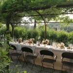 Wedding Breakfast under the pergola as the sun dips behind the trees – white wisteria overhead, wine flowing, and that golden Umbrian light you’ll never forget.